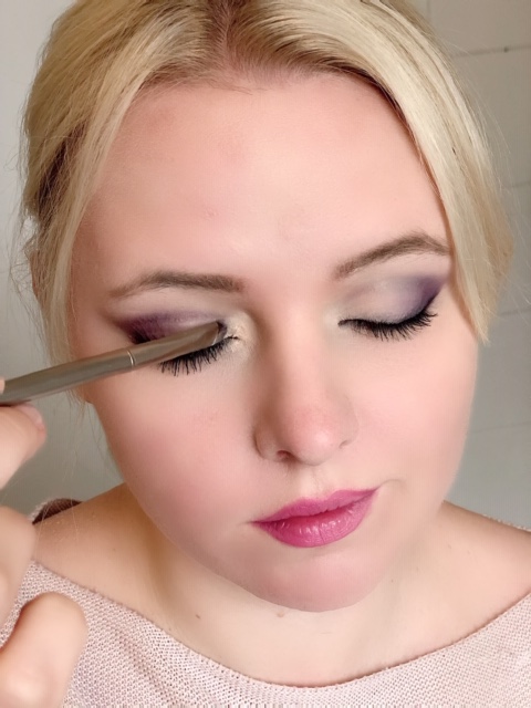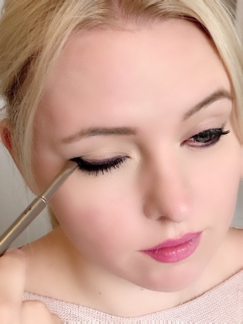 Der erste Schritt zum perfekten Augen Make-up, das Unterlid des Auges mit einem dunklen Lidschatten betonen und mit einem Pinsel rauchig verblenden. Dadurch wirkt das Auge größer.