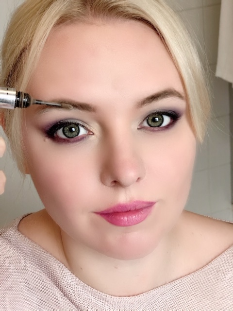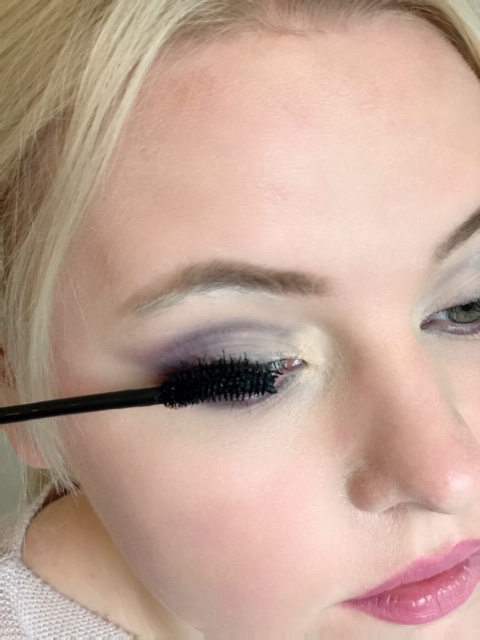 Wimpern wie gewohnt tuschen. Wer die Augen zusätzlich noch etwas betonen will, kann natürlich auch falsche Wimpern ankleben.